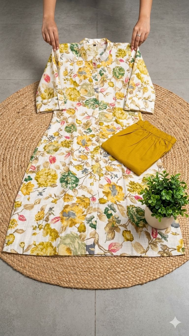 Step into effortless elegance with this beautiful Bamboo Cotton Kurta Set, designed for comfort and style. Made from pure base cotton with bamboo blend, this outfit is soft, breathable, and perfect for all-day wear. The kurta features stunning floral prints with discharge foil work, giving it a subtle shine and a graceful look.