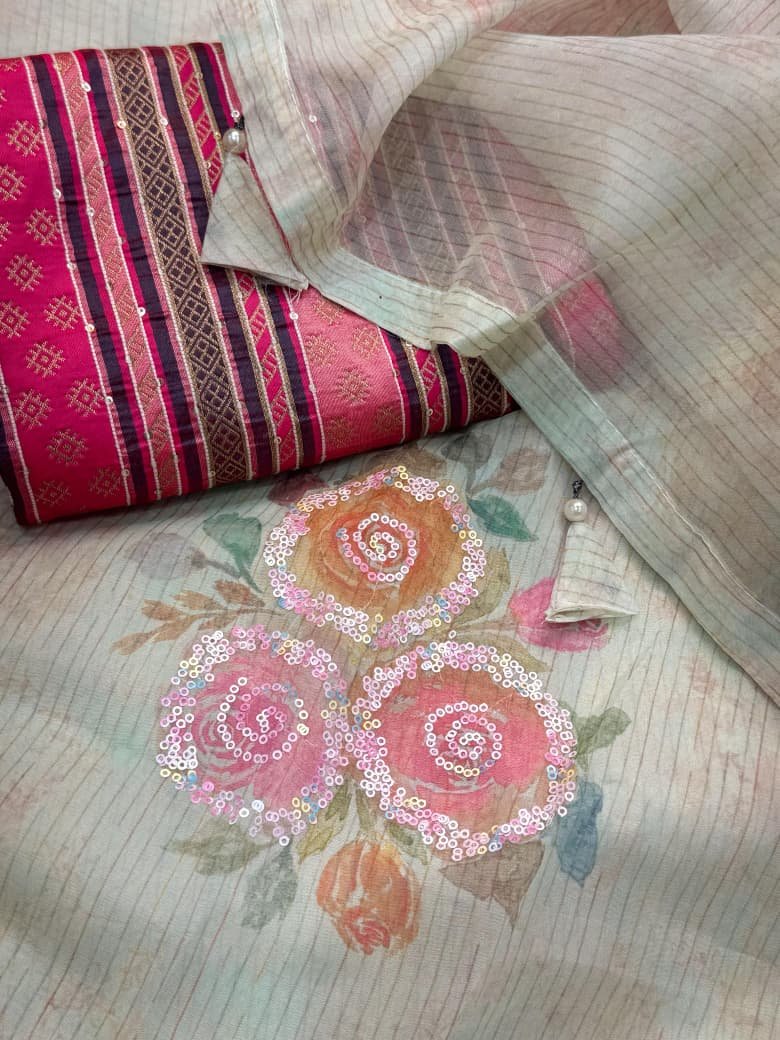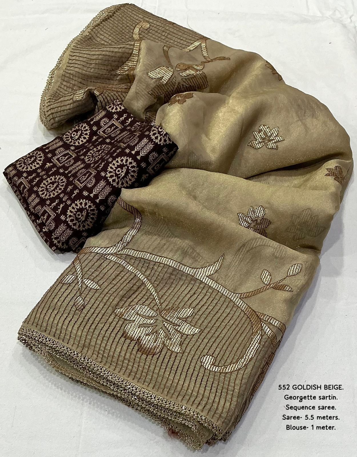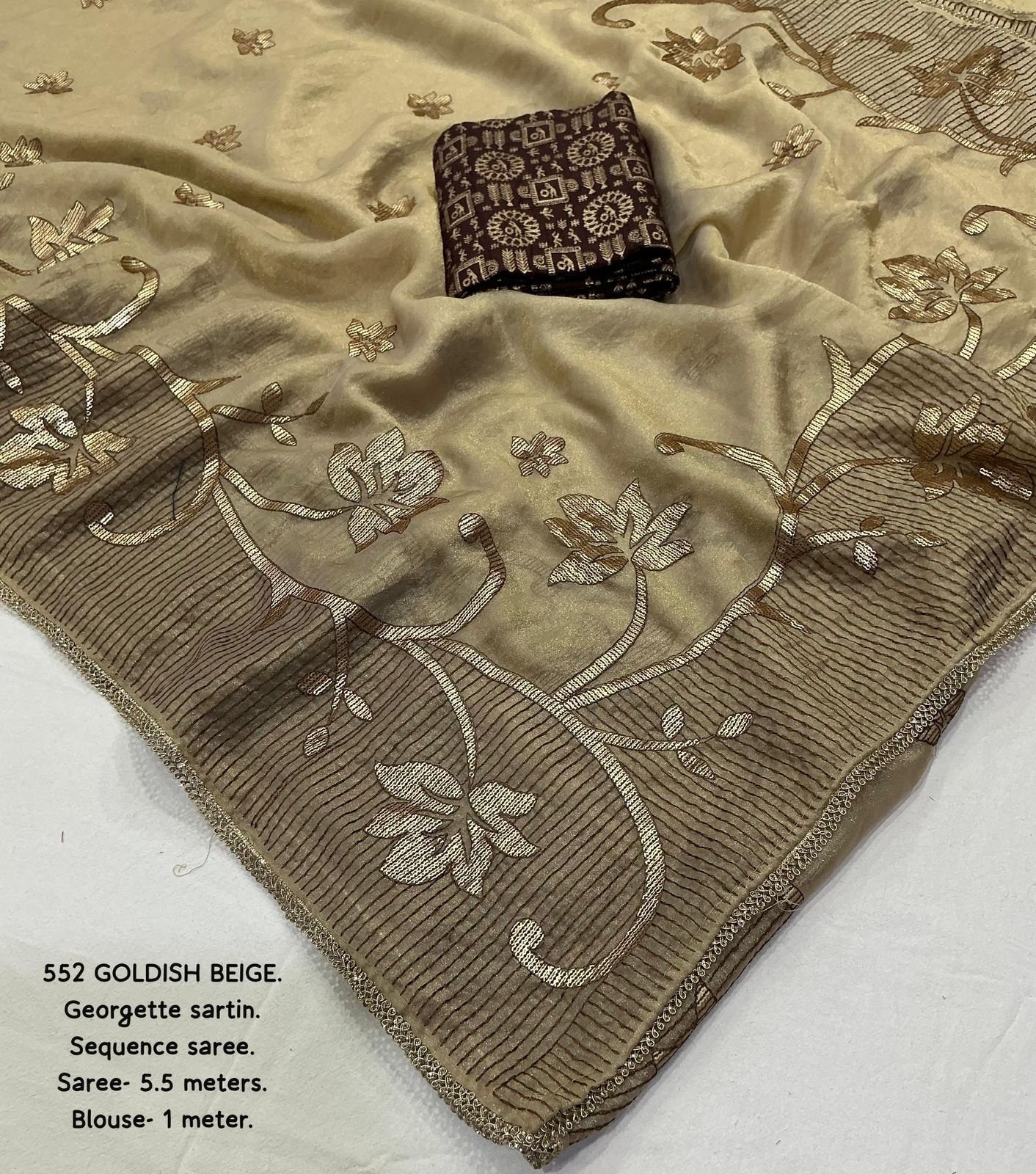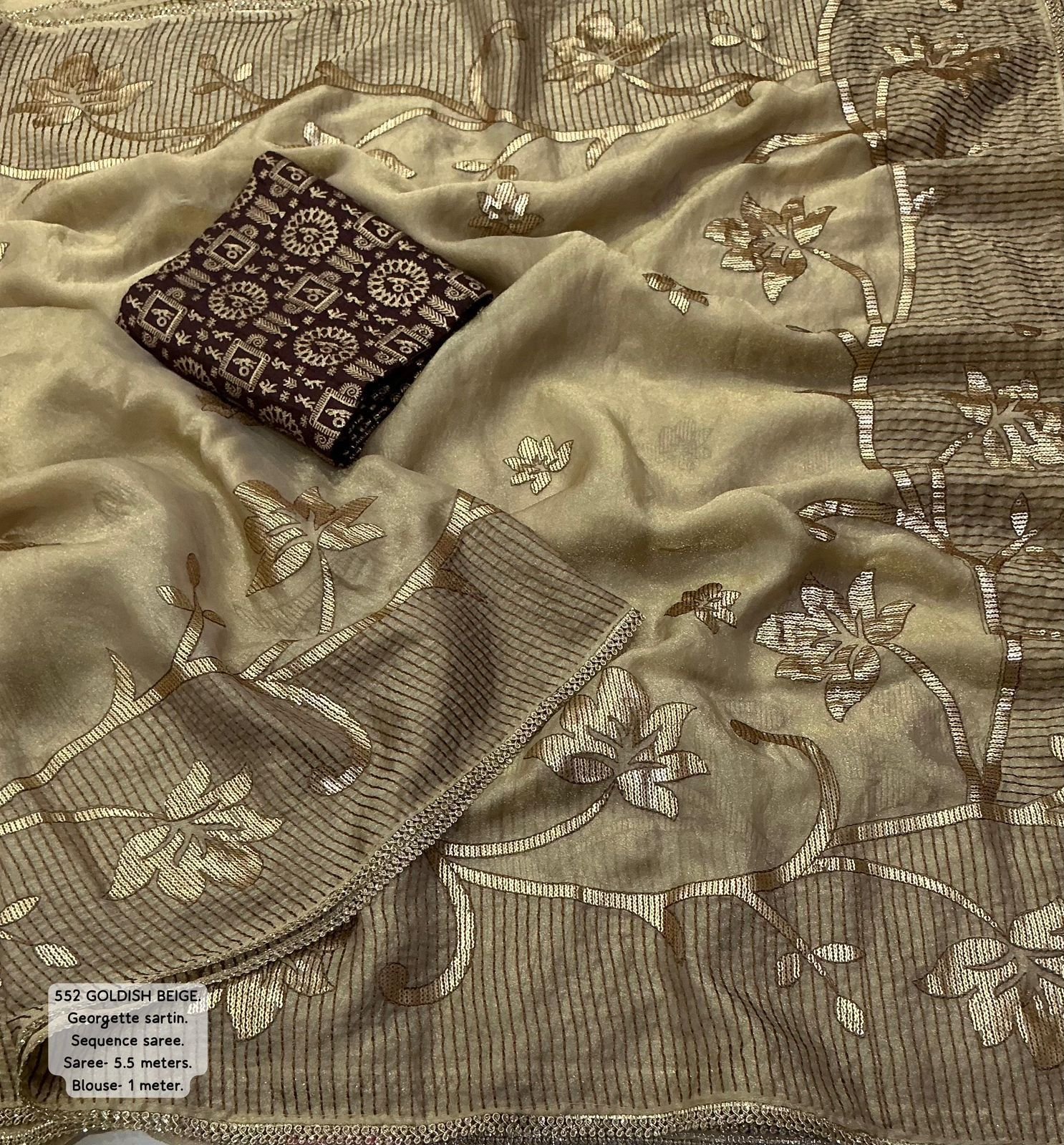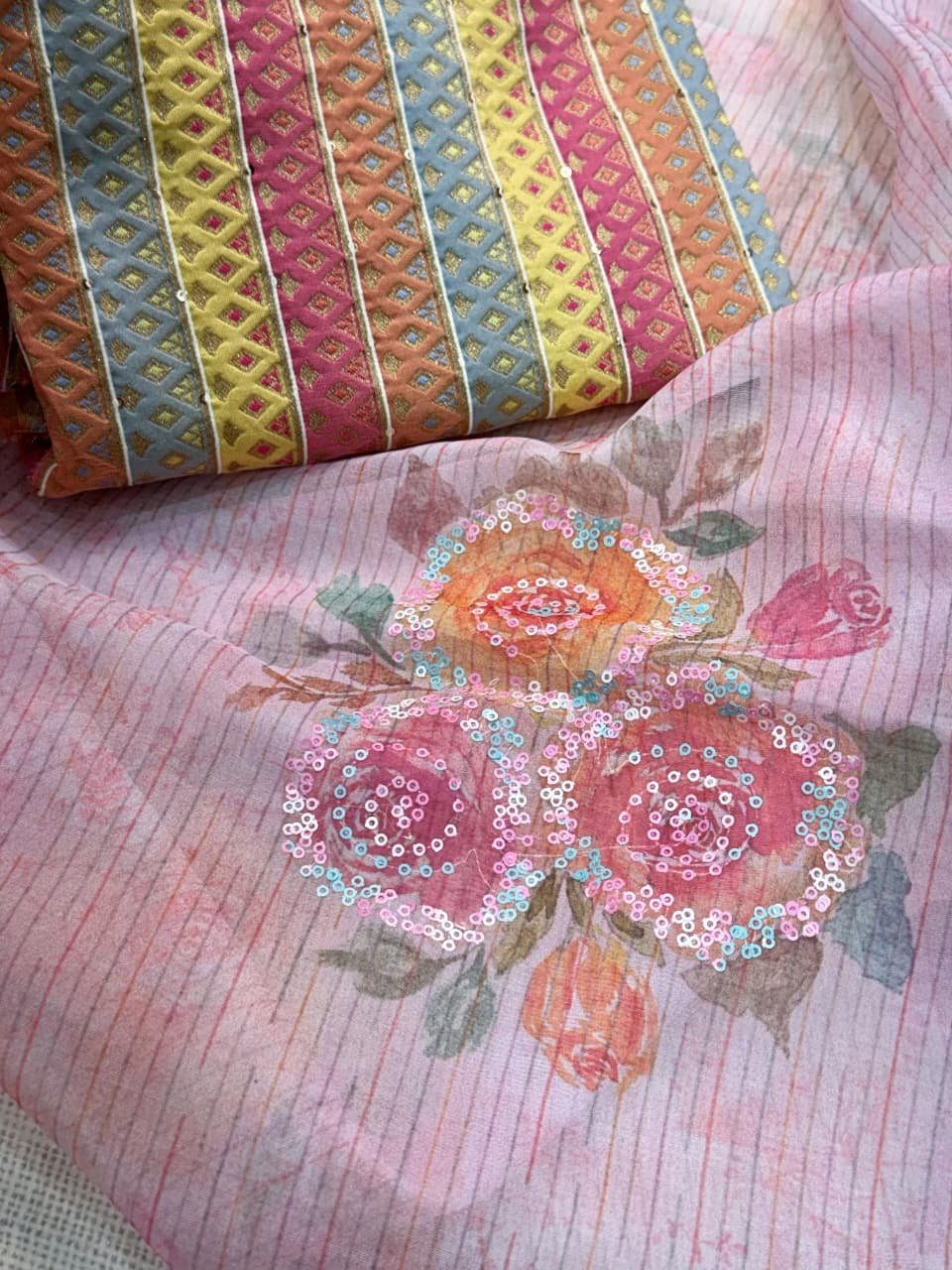 Design: Heavy 3mm sequin embroidery work finished with a ready-made lace border.