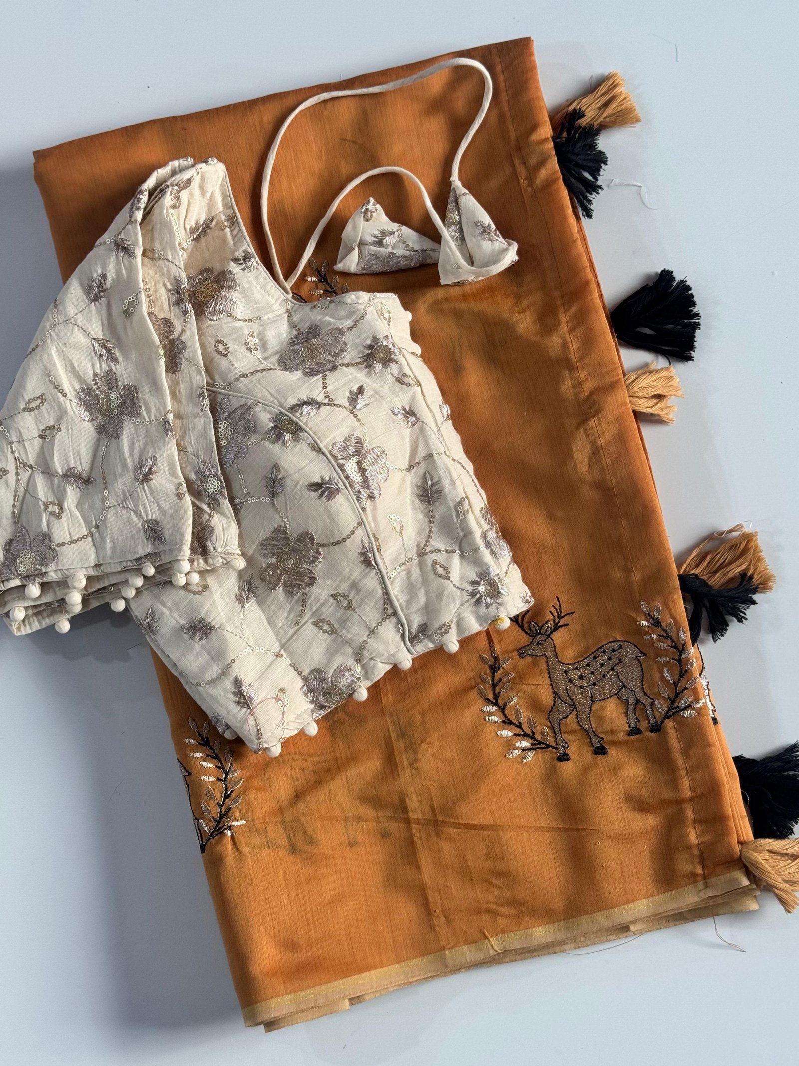 Product Name Hiran Motif Chanderi Silk Saree with Khadi Blouse