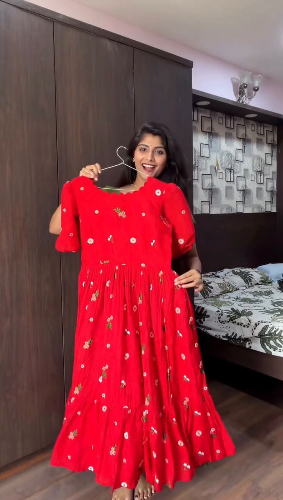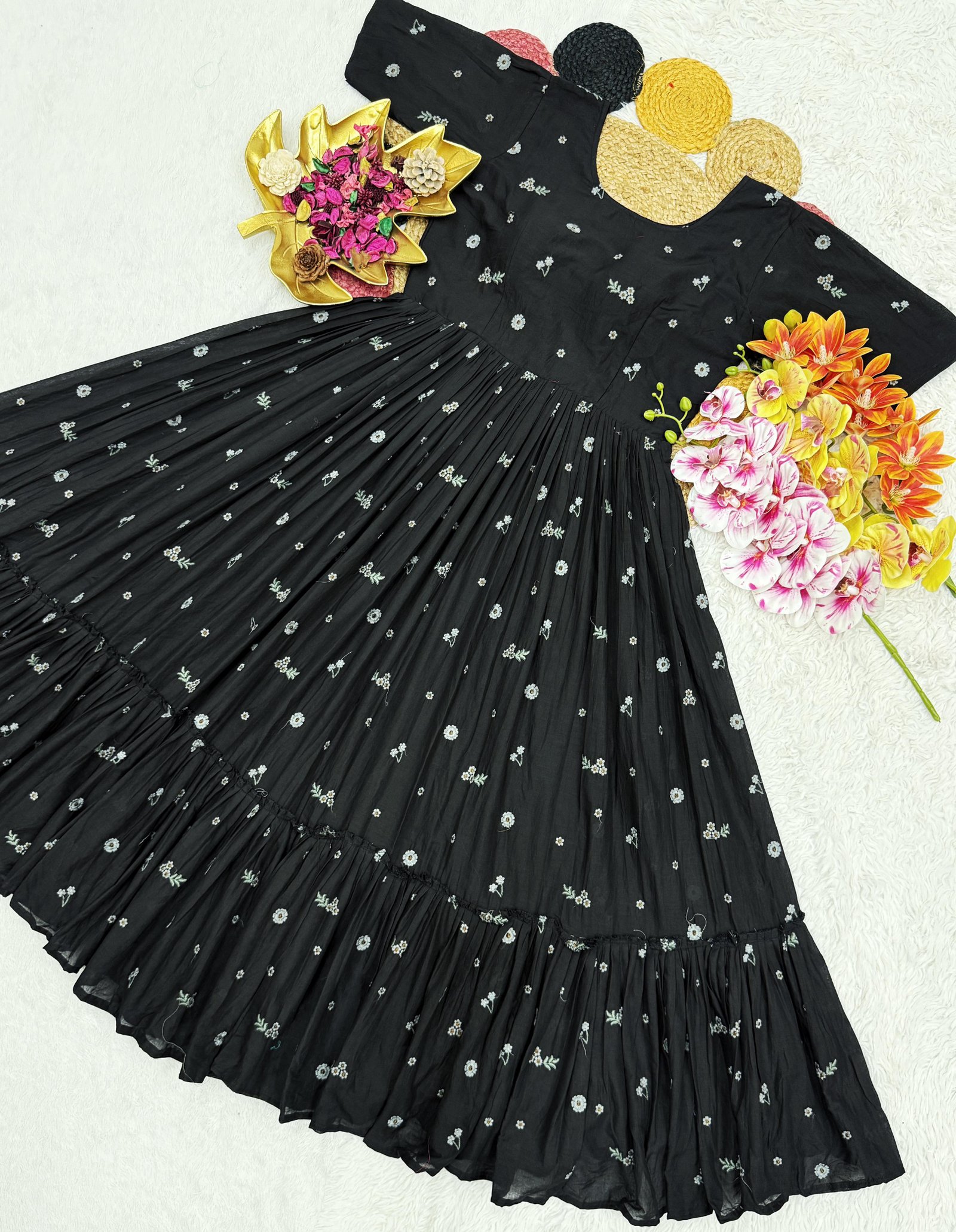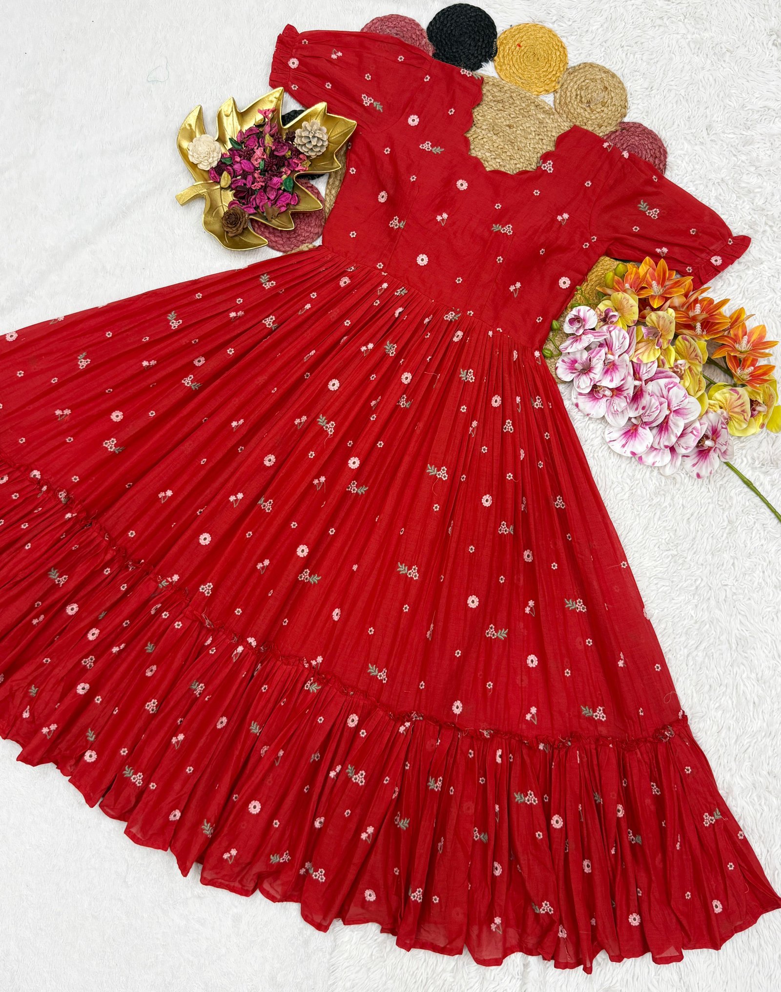 Product Name Floral Thread Work Mulmul Chanderi Summer Gown