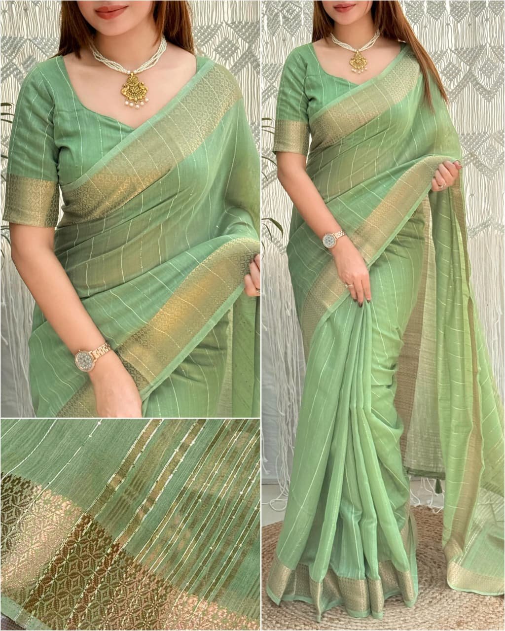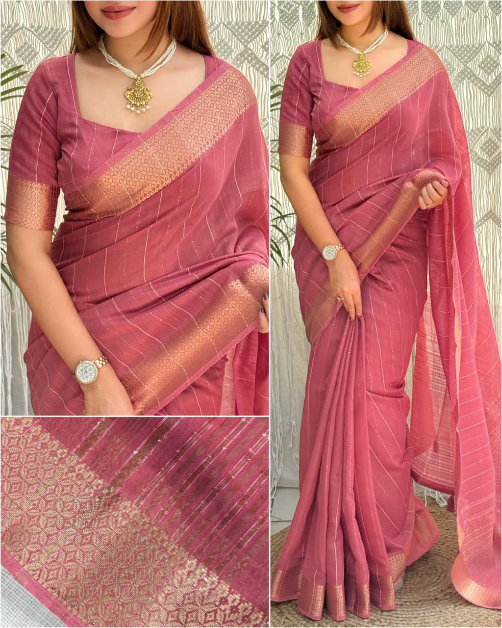 Experience the perfect blend of minimalist elegance and artisanal detail with our Naaz Design. Specifically crafted for the upcoming summer season, this solid-colored casual wear saree offers the breathable comfort of pure cotton paired with a sophisticated touch of traditional weaving. It is the ideal choice for women who seek a refined, effortless look for daily wear or daytime gatherings.