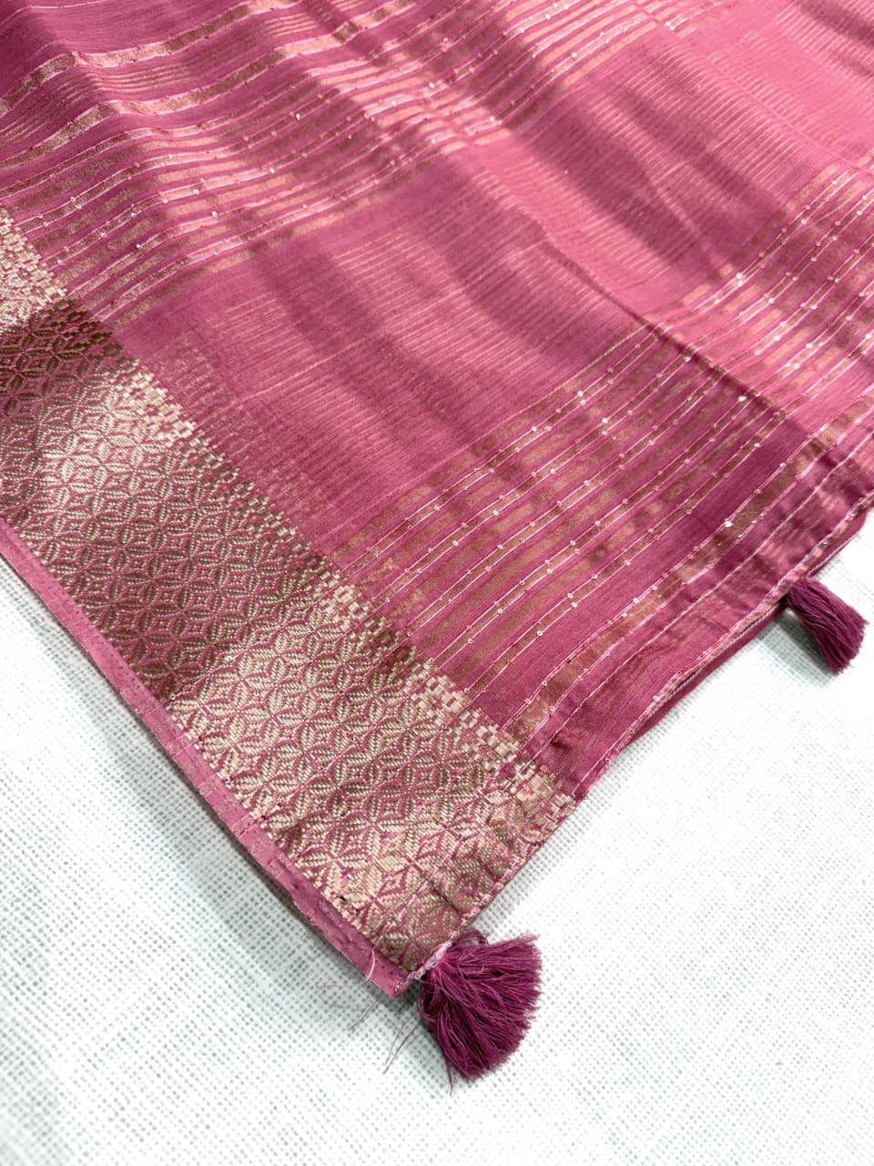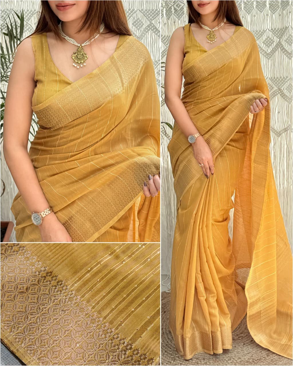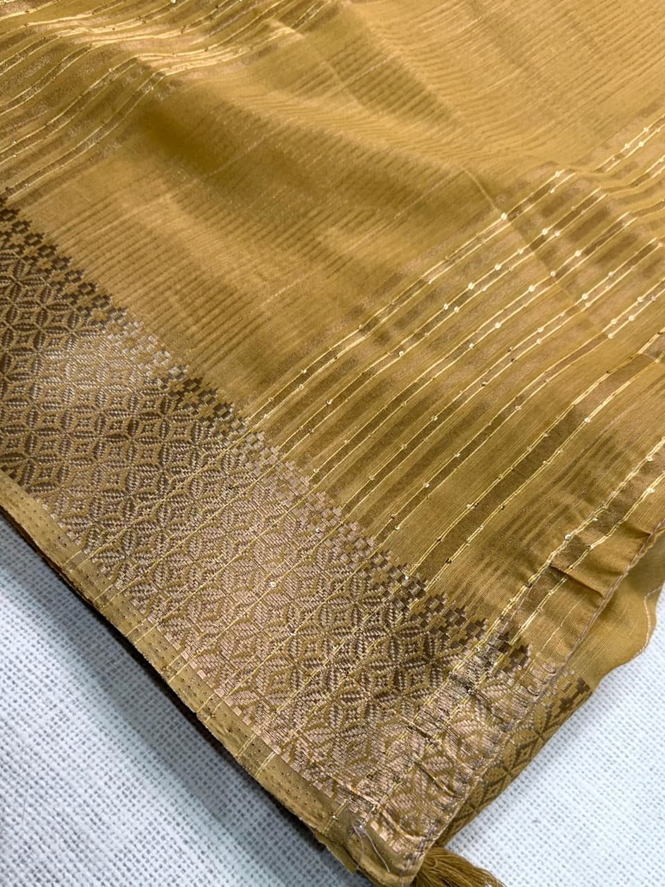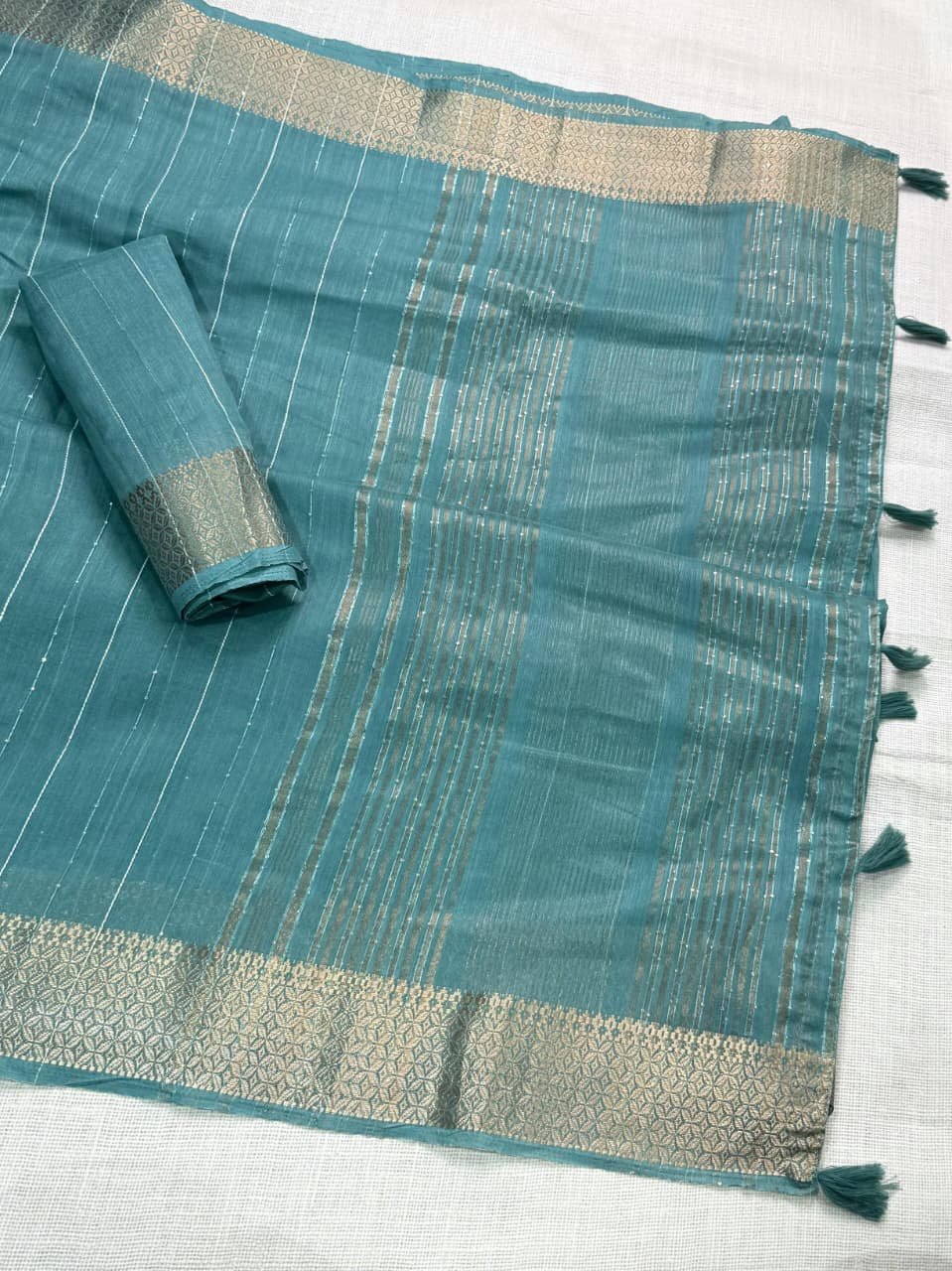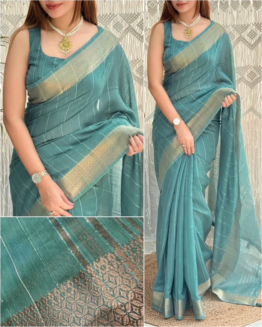 Textured Striped Pattern: Adorned with a thread-weaved striped pattern and a delicate sequin touch across the full length, providing a rich, multi-dimensional texture.