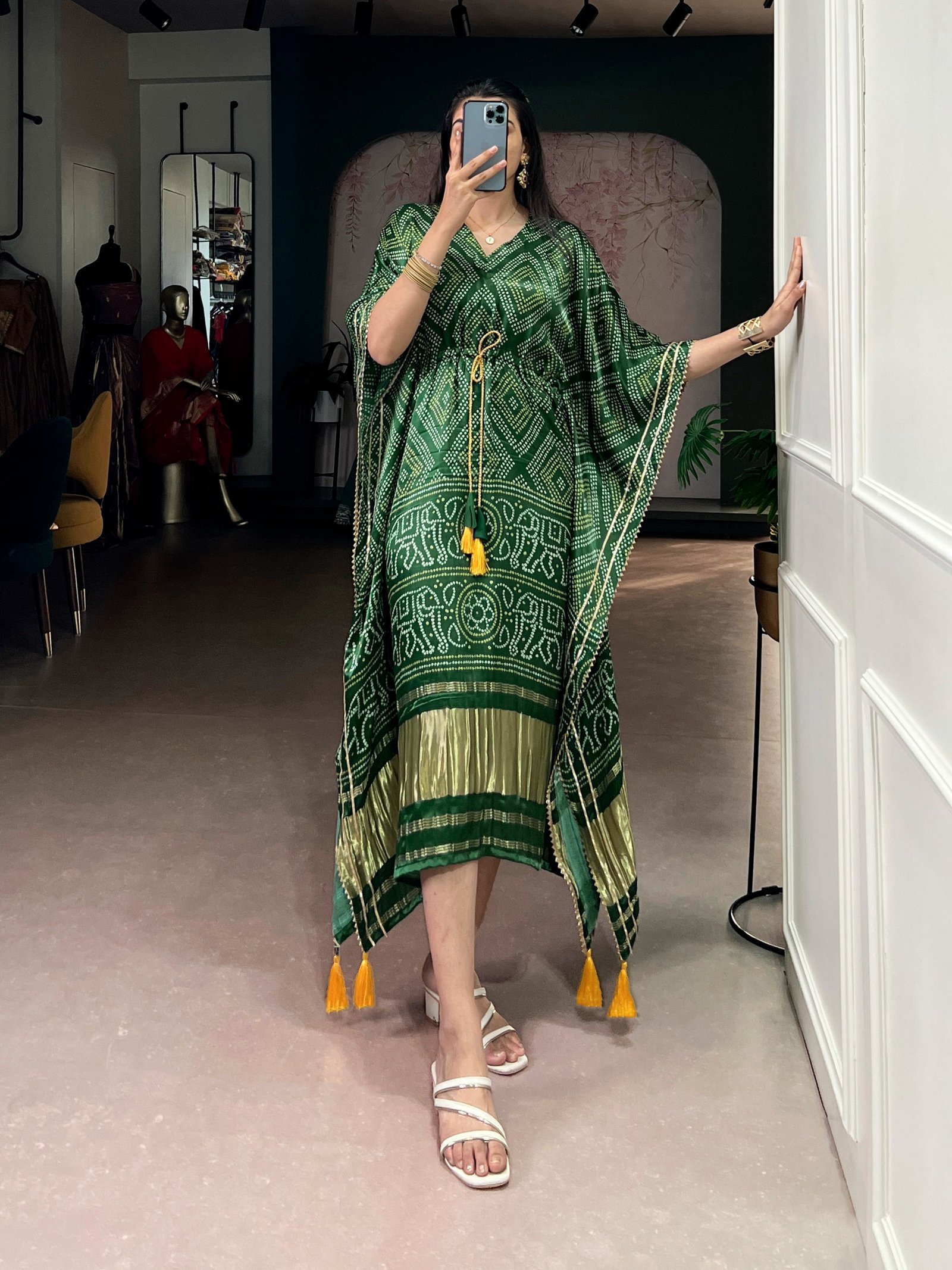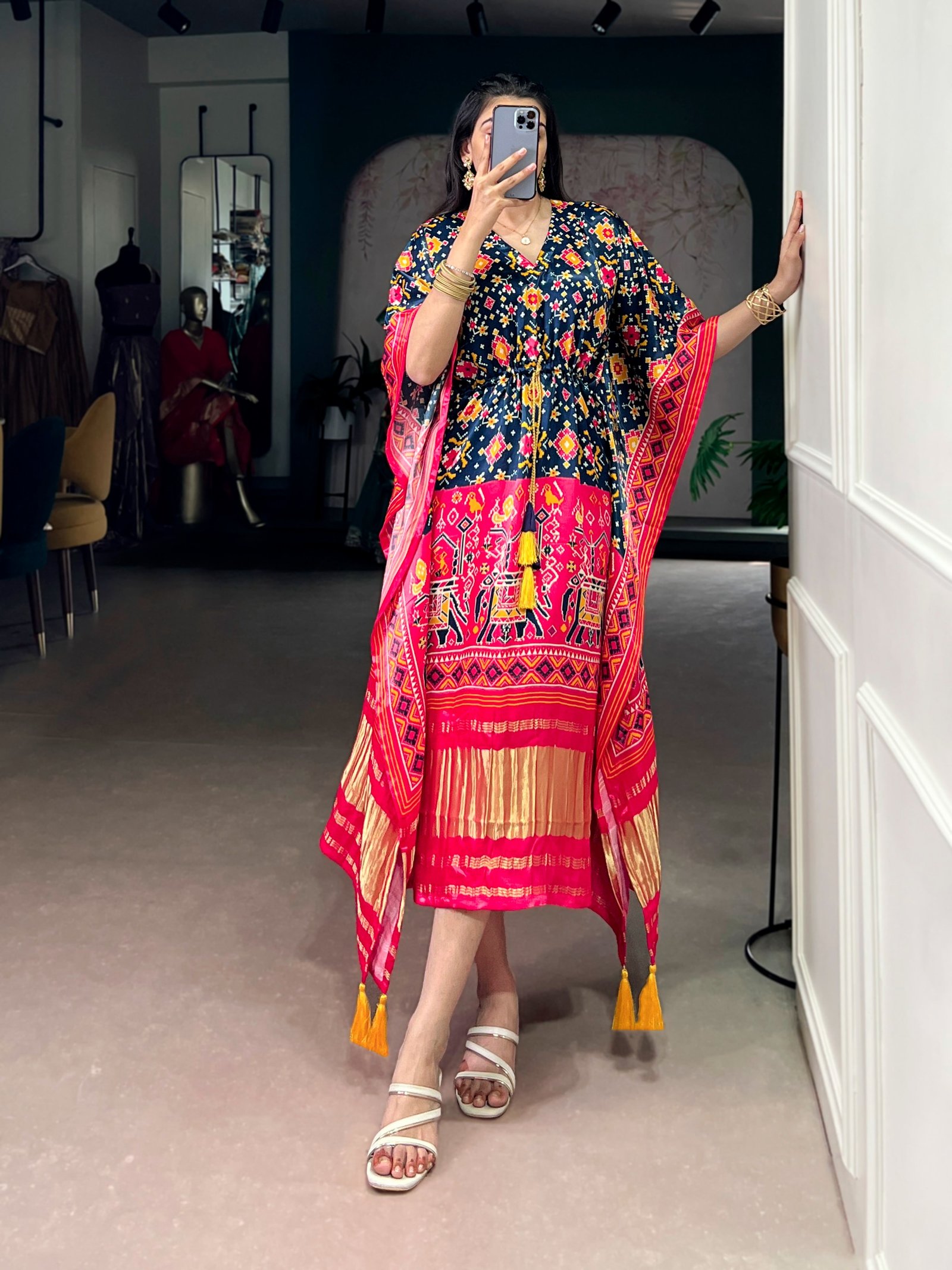 Premium Gaji Silk Kaftan Dress β Digital Print with Gotta Patti Lace
