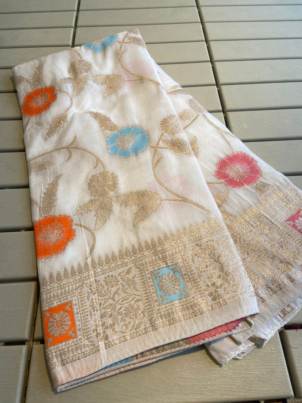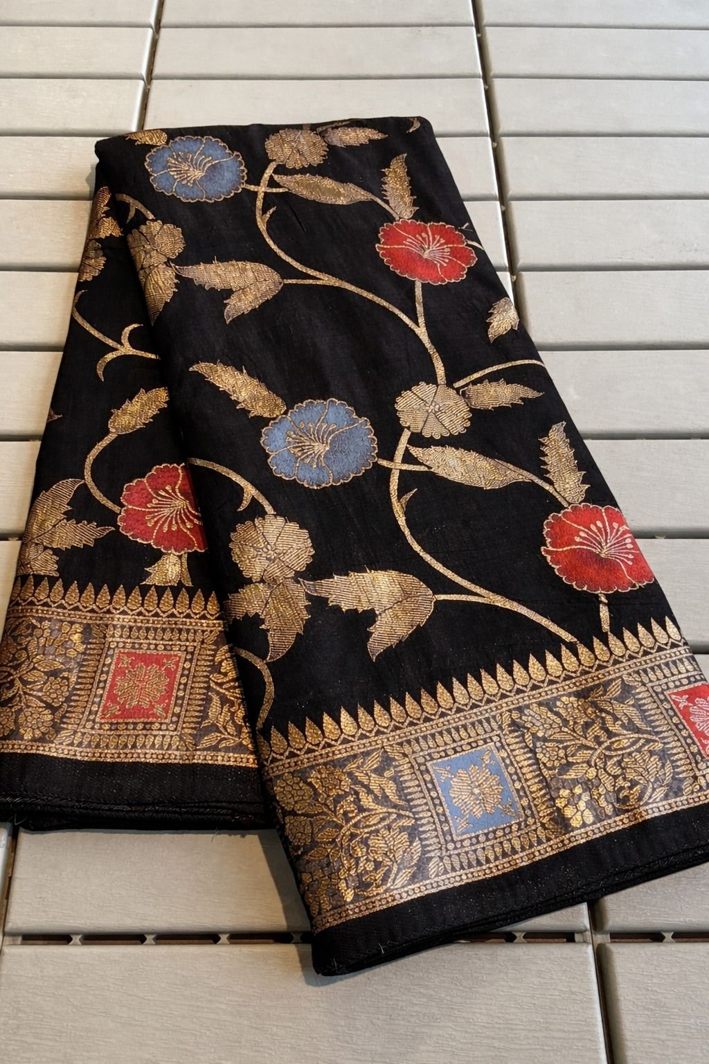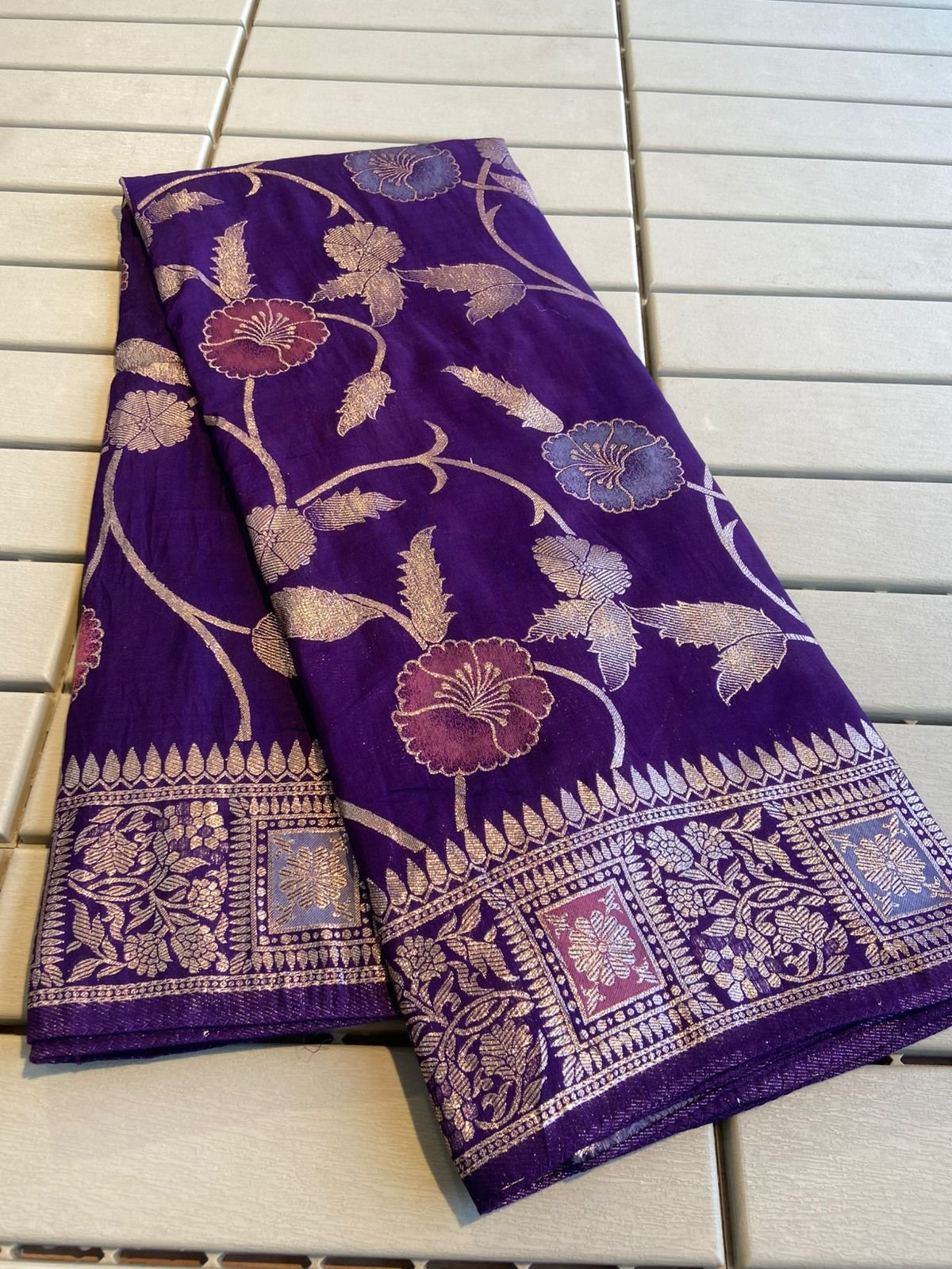 ✨ Full Saree Design: Beautiful Meenakari and Zari weaving throughout the saree