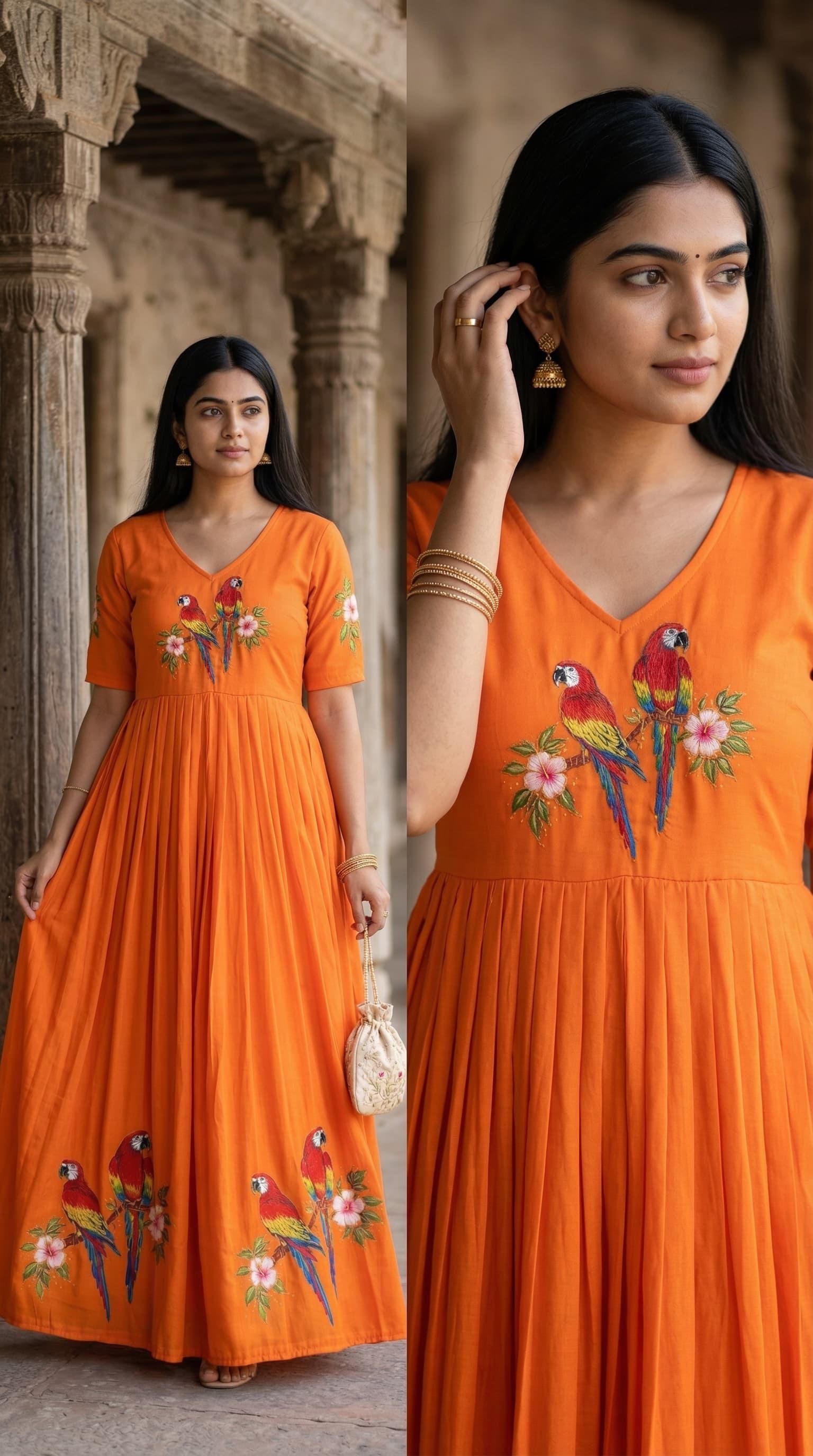 Workmanship: Detailed embroidery accented with sparkling mirror-work for a high-glam look.