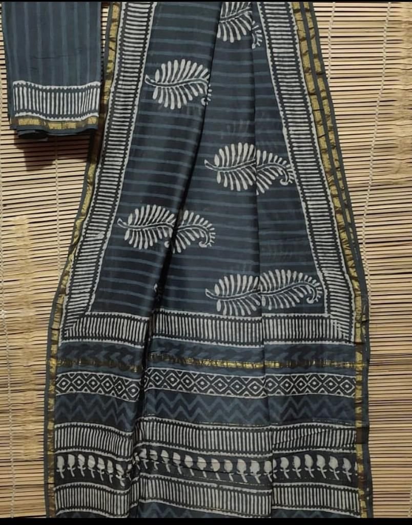 Simoni Chanderi Silk Digital Print Saree with Zari Border