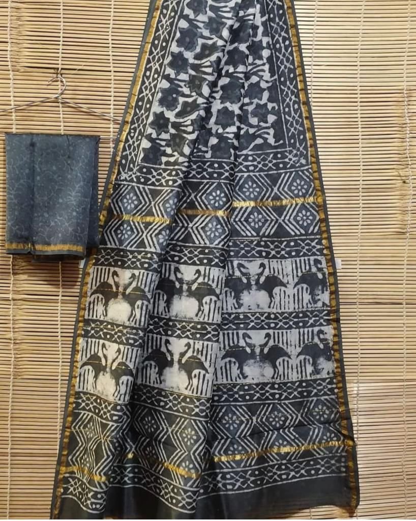 Complete Set: Comes with a matching unstitched blouse piece to complete your ensemble.